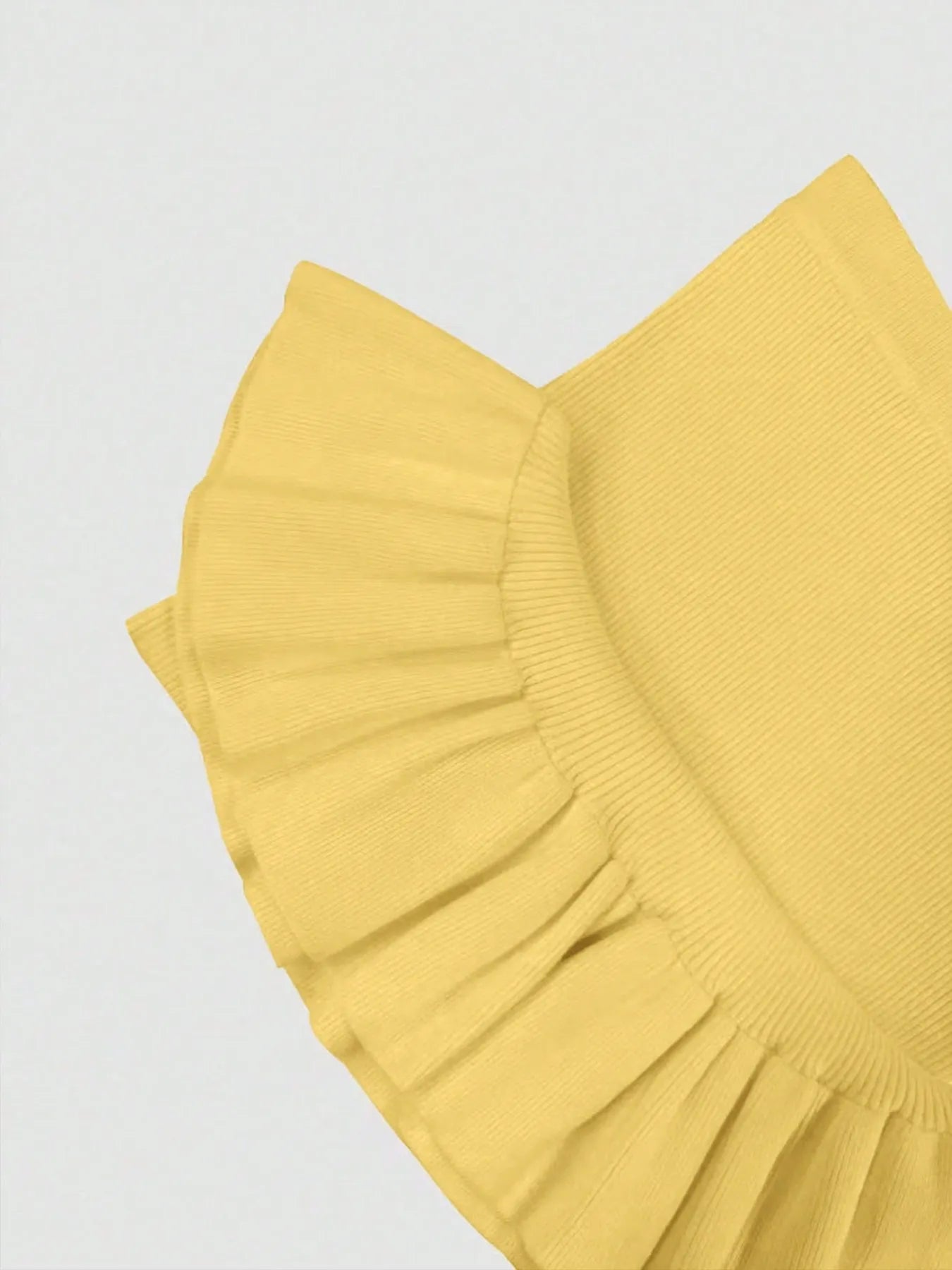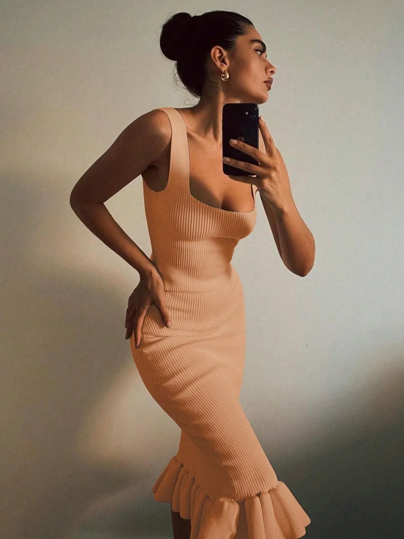Ribbed Knit Bodycon Mermaid Dress with Ruffle Hem
